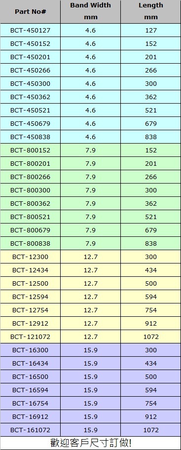 白鐵束帶)、黑色聚脂烤漆、 尼隆烤漆束帶、不鏽鋼烤漆束帶。