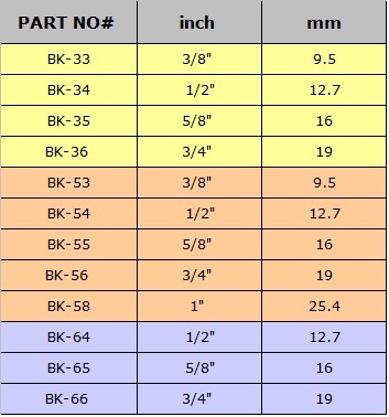 ★ BK-5:9.5mm(3/8),12.7mm(1/2),15.9mm(5/8)、19.0mm(3/4)